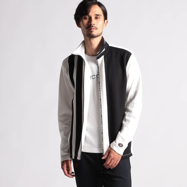 エッジの効いたカッティングをジオメトリックに配置したモノトーンバイカラースタンドブルゾン。スポーティなダンボールニットをモードなルックに昇華し、インパクトあるアイテムに仕上げています。首元にはロゴテープのアクセント、裾と袖口には切り替えを入れずスタイリングしやすいデザインにしています。