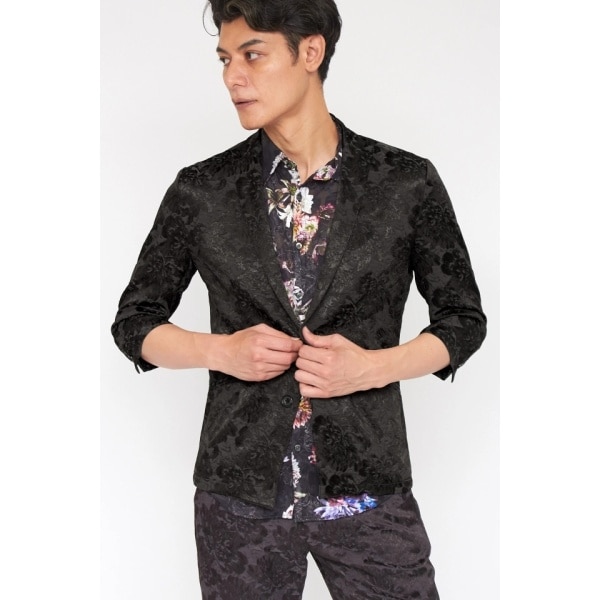 トルコ製SIMMOD社のフラワージャカードを使用した七分袖テーラードジャケット。