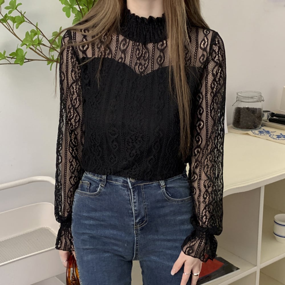 甘いデザインはカジュアルなボトムと相性がよく、サロペットのインナーにするのもおすすめ