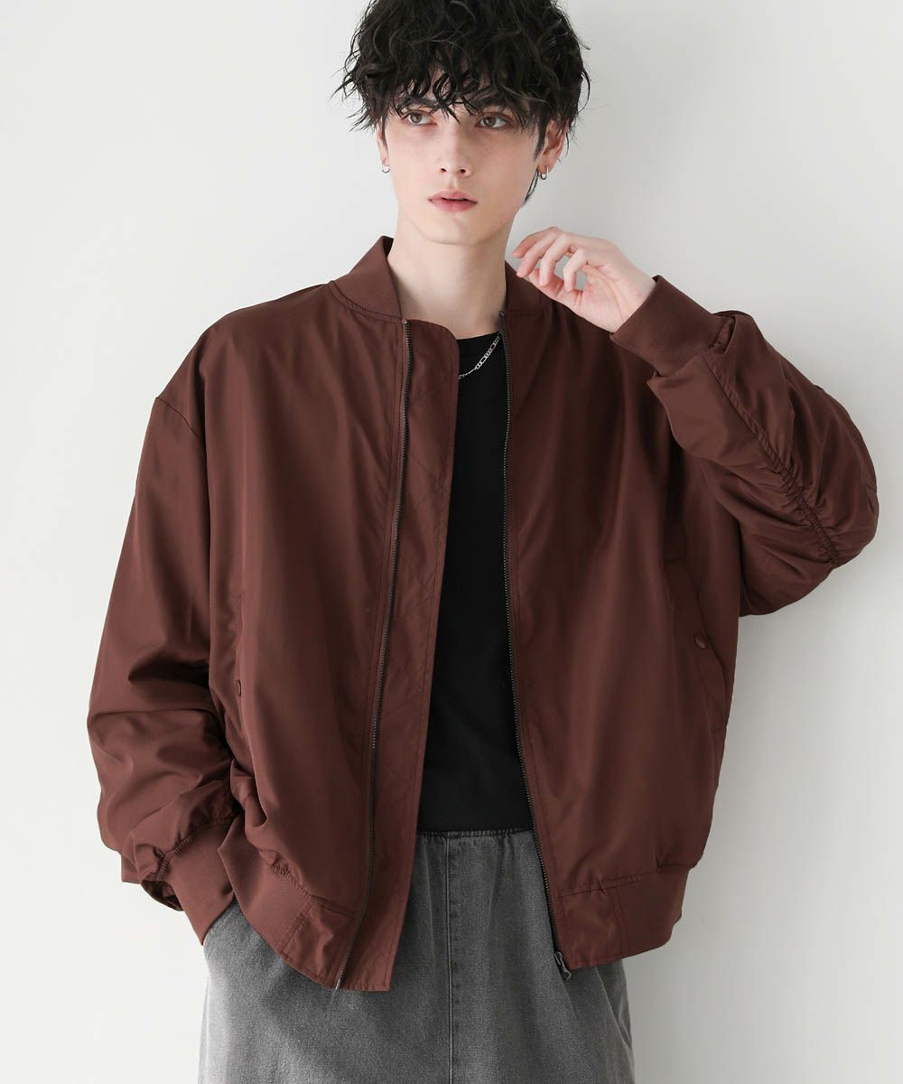 ビッグシルエット袖シャーリングアーバンMA-1ブルゾン