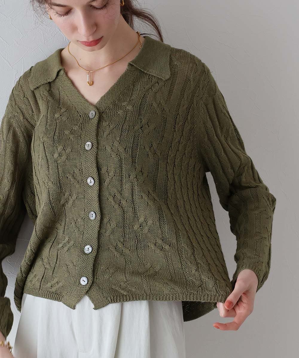 涼しげな透かし編みデザインが特徴のニットカーディガン。