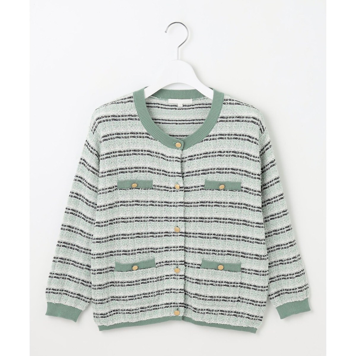 ツイーディーな表情が華麗なカーディガン■デザインツイーディーな素材の表情が華やかなカーディガンです。ニットならではの柔らかな着心地とさっと羽織れる気軽さがありながら、キレイめな印象にしてくれるジャケット風のポケットディティールがポイントです。胸元のディティールはポケットに見せかけたデザインです。コンパクトなシルエットなのでフレアスカートやワイドパンツと好相性です。夏に向けての羽織りとして、スタイリングに取り入れるだけで華やかさを演出してくれるアイテムです。■素材ツイーディーな表情を作り上げるため、ペーパーヤーン、ラメ糸、コットン糸など様々な個性豊かな素材をミックスした、カラフルでユニークな素材です。しっかりとした表情とさらりとしたタッチが特徴です。