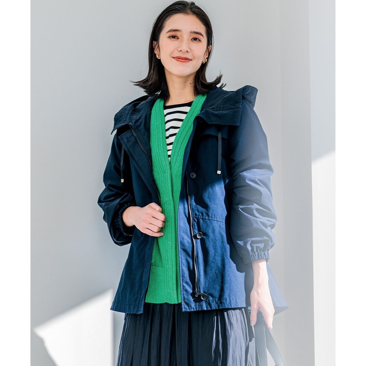 ■デザイン立体的で華やかな顔周りを演出してくれるフードコート。しなやかに広がるAラインのシルエットが美しく、後ろのペプラムがスポーティになりすぎない洗練された印象にしています。ブラックの附属づかいを取り入れ、全体に締めポイントをつくることで大人の甘さに仕上げました。楽にさっと羽織れ、ゆったり着れるので中にもしっかり着込めます。ウエストの内側にはアジャスターがあり絞れるようになっています。特別感のある配色のメッシュ裏地もポイントです。