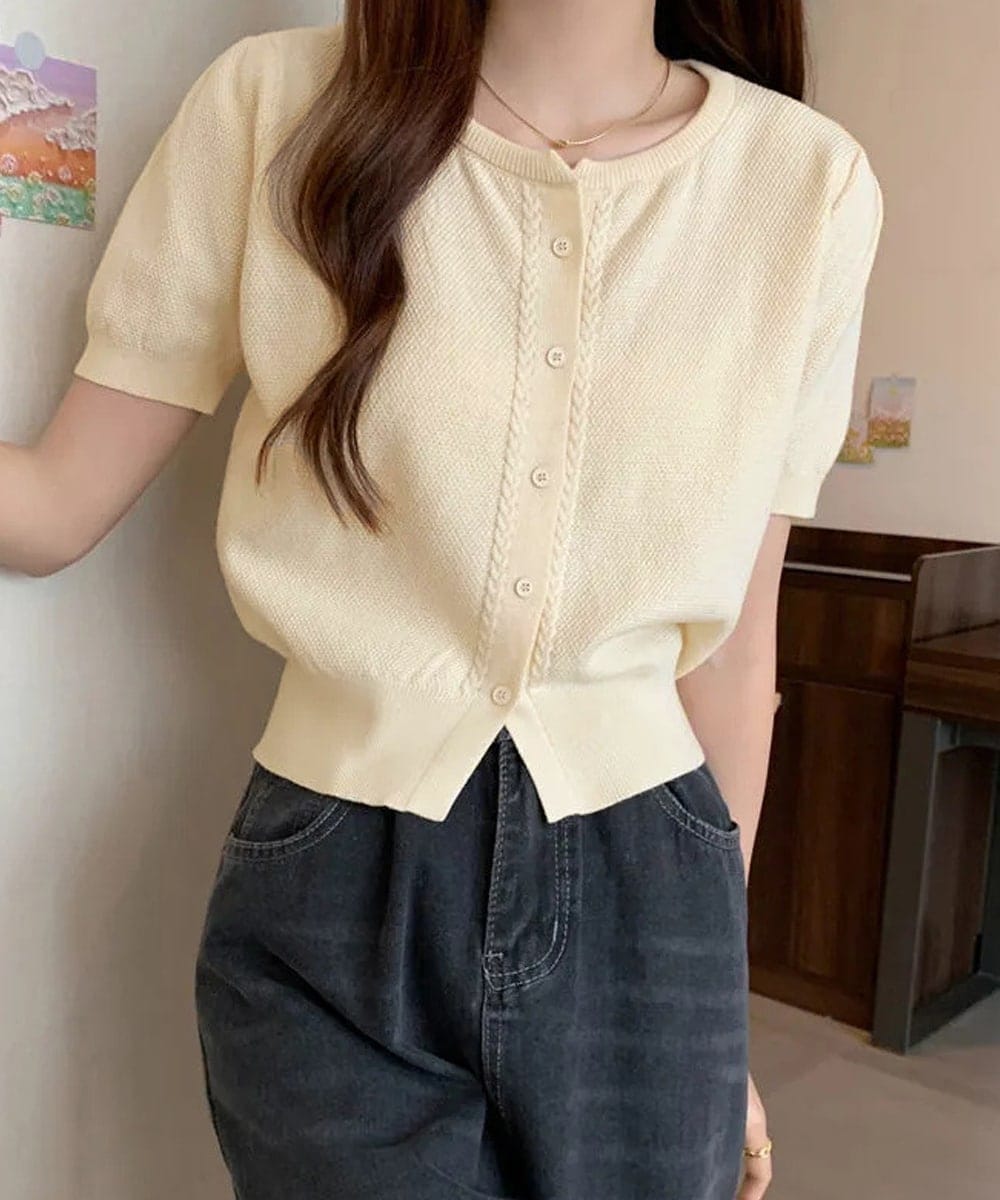 程よく女性らしさを感じさせるクルーネックサマーニットカーディガン
