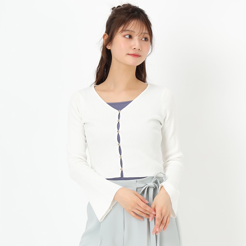 袖口に向かって広がるフレアスリーブが動きのある印象を与えるカーディガン。伸縮性に優れたリブ素材で仕立てられ、タイトなフィット感を演出します。Vネックの首元がすっきりとした雰囲気をプラス。季節の変わり目のお出かけに重宝したいアイテムです。■fabric透け感[無し]裏地[無し]伸縮性[有り]生地の厚さ[普通]