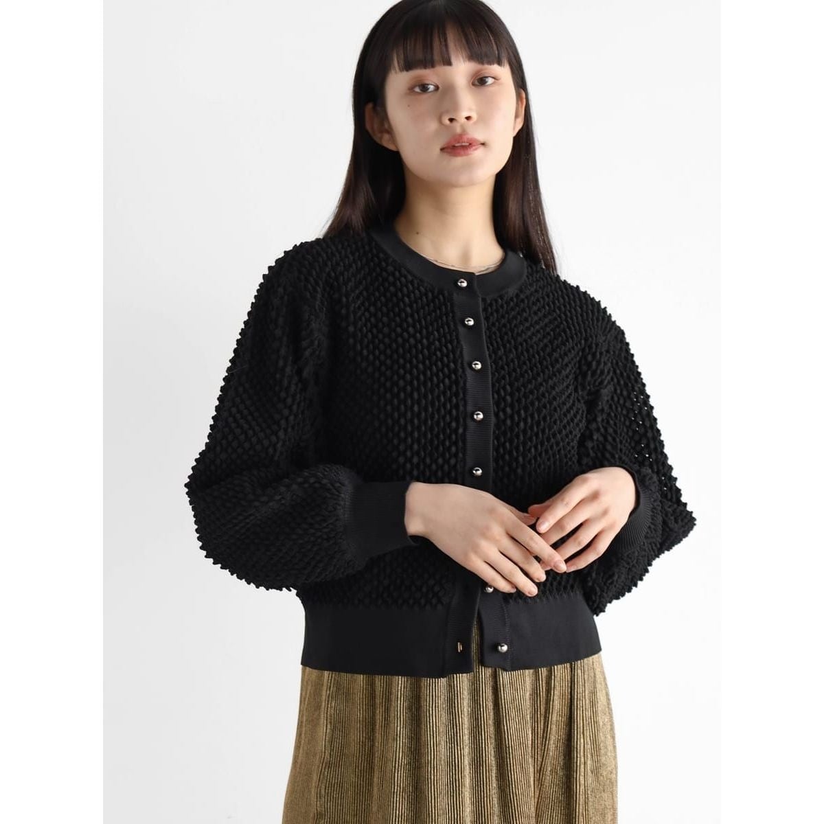 ポコポコとした立体的な編地が目を惹くニットカーディガン。