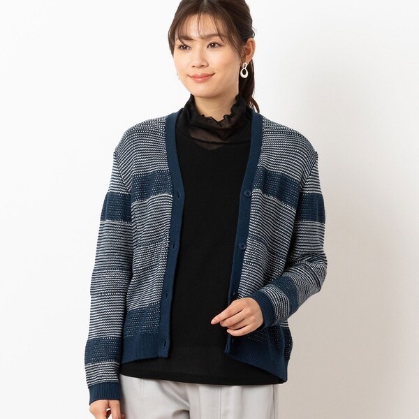 編み柄を変化させたボーダー柄のニットカーディガンです。