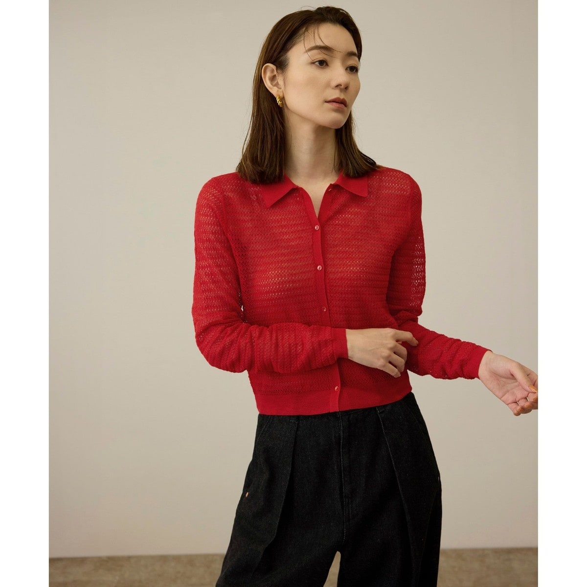 13279 ★★ 透かし編みニット カーディガン 長袖 新品