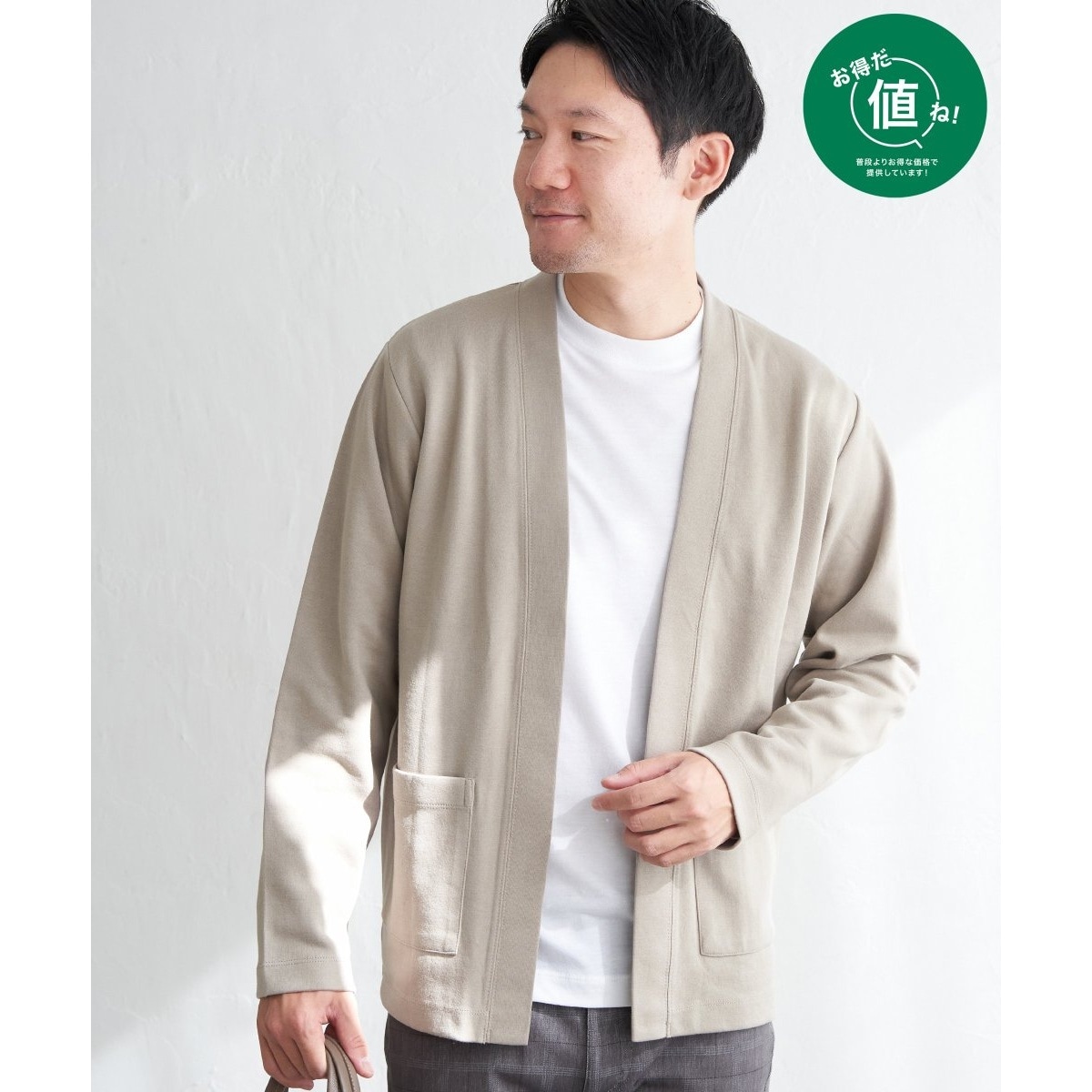 ほどよいハリ感と軽やかな着心地が魅力のダンボールカーディガンに、シンプルな長袖Tシャツを合わせた2点セット。