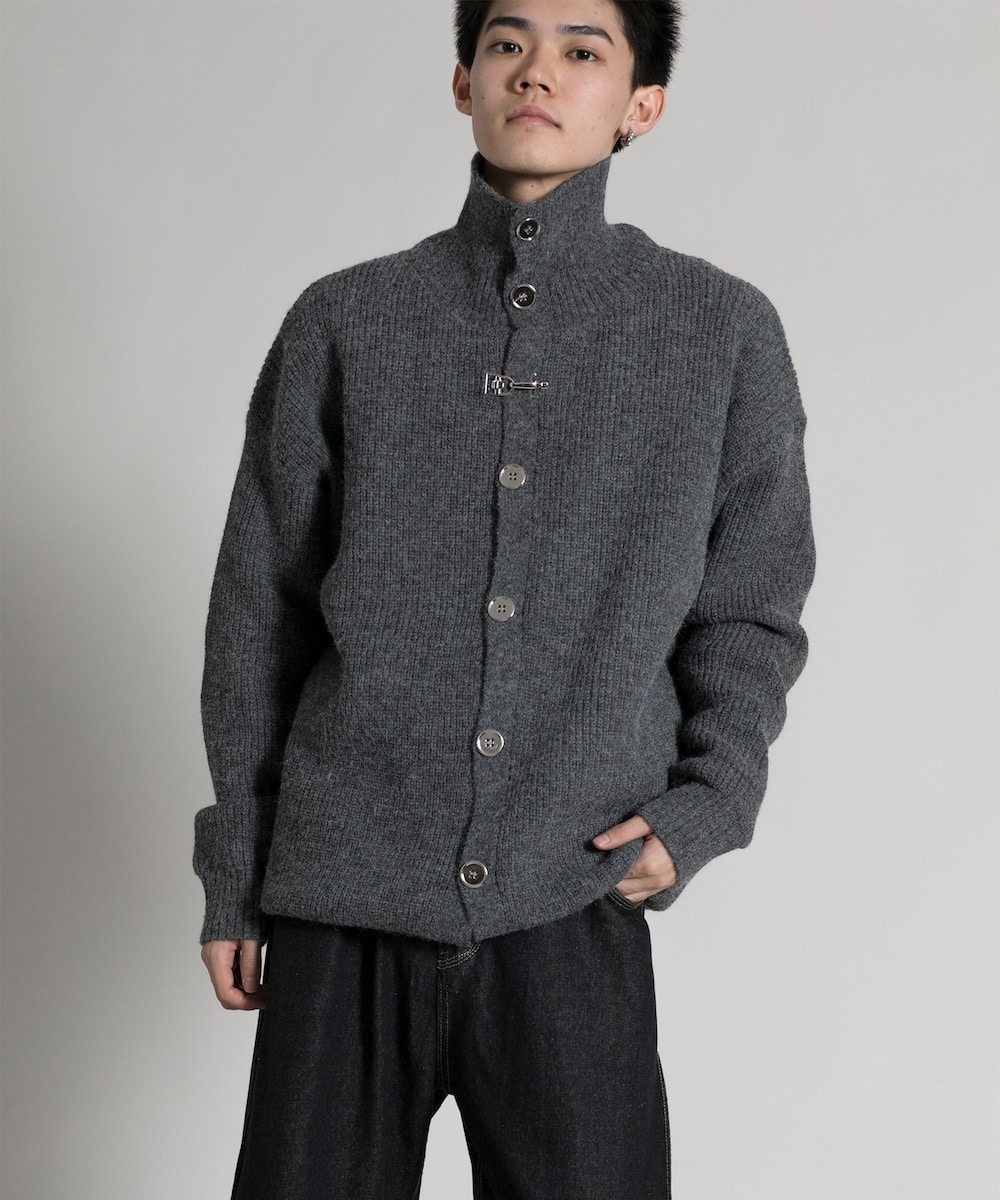 『襟高デザインがポイントのスタンドハイネックカーディガン。』