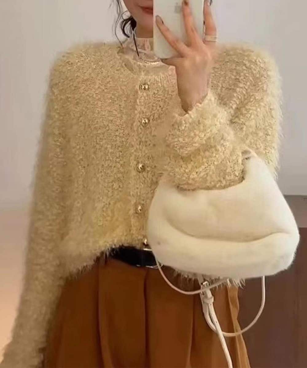 肌触りの良い可愛い冬の定番アイテム♪軽く保温性のあるシャギー素材。