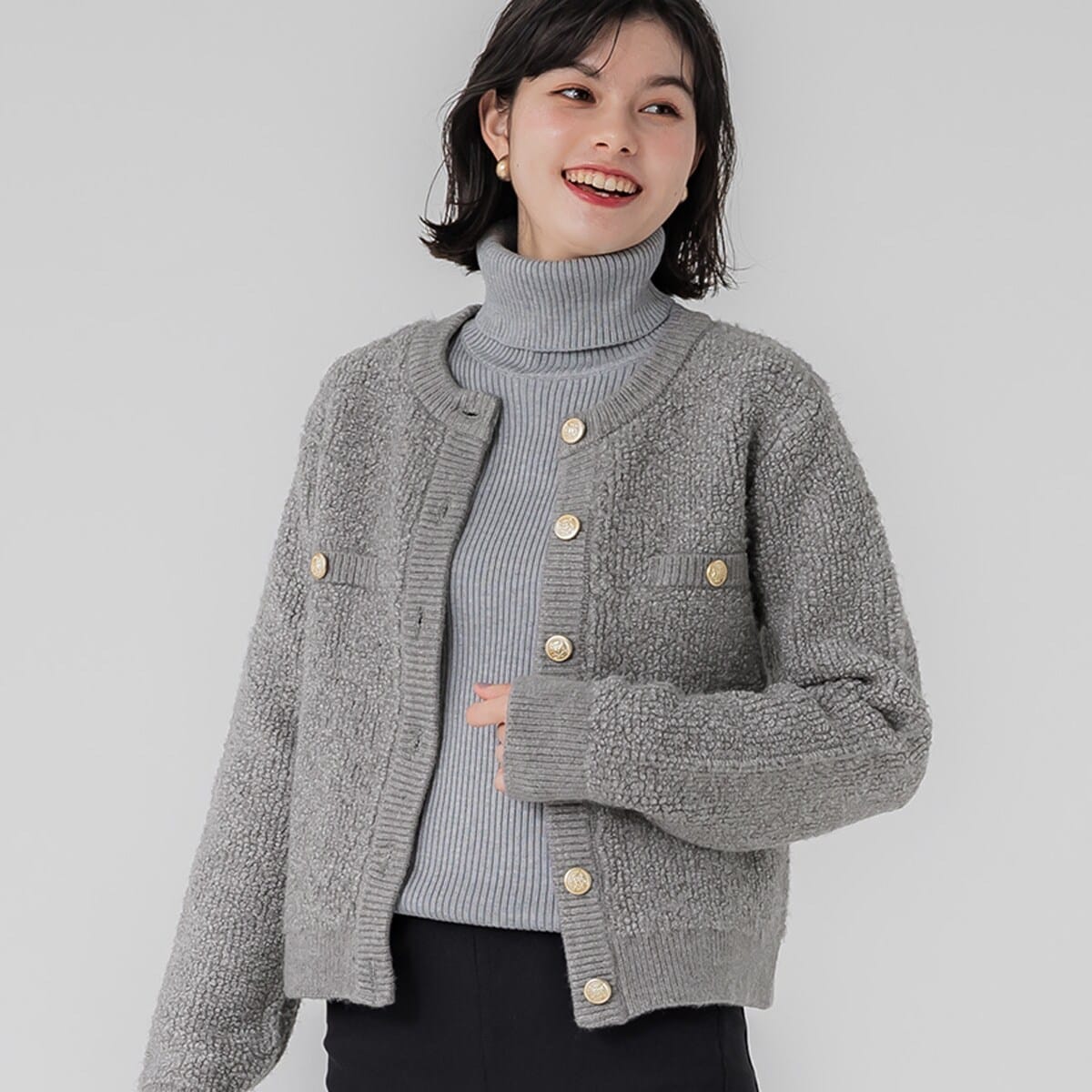coca ループ編み金ボタンニットジャケット