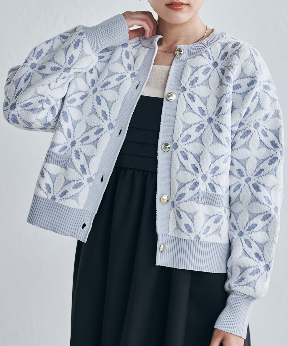 シーズンムードを盛り上げる大人上品な花柄ニットカーディガン