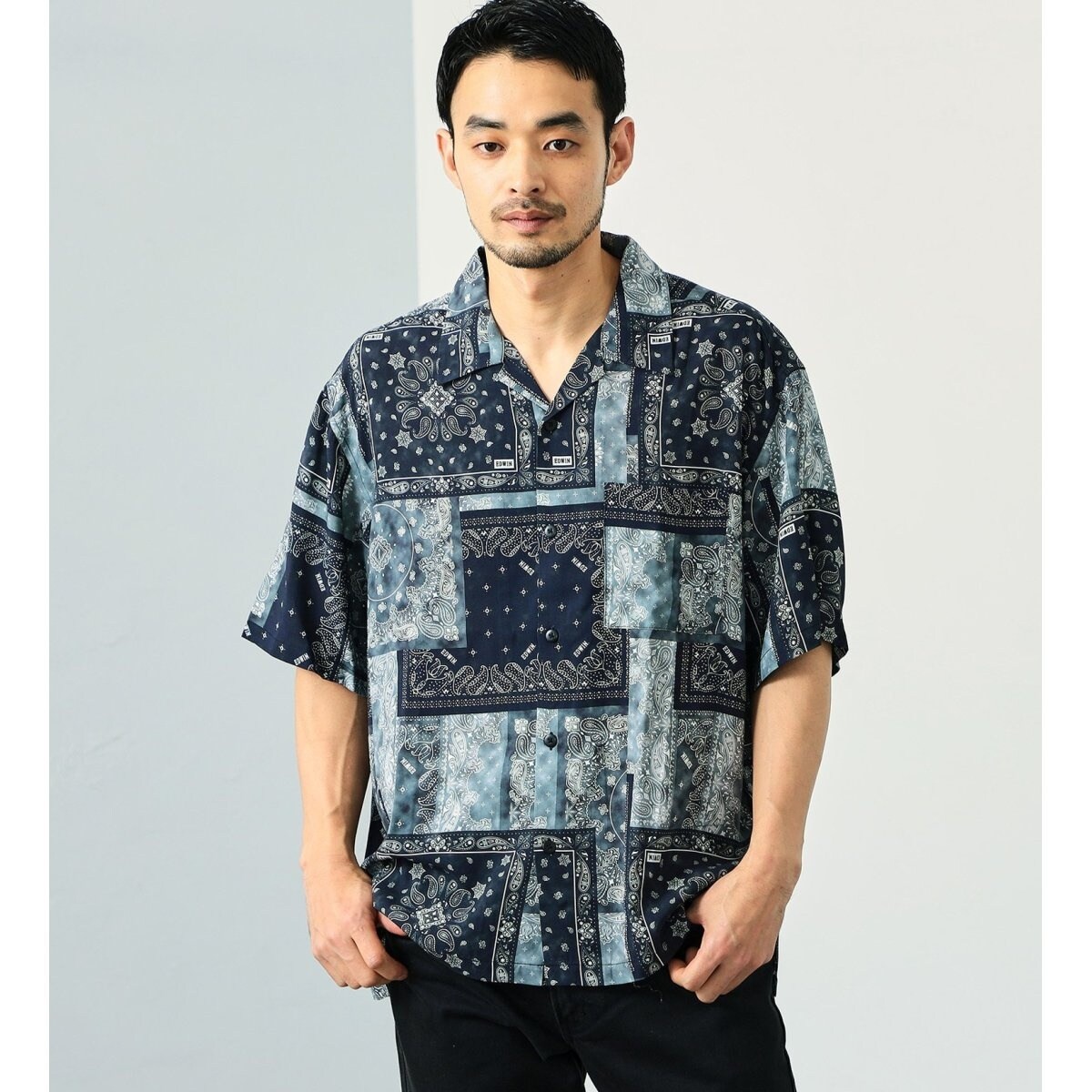 ☆バンダナ柄 オープンカラー 半袖シャツ M ネイビー
