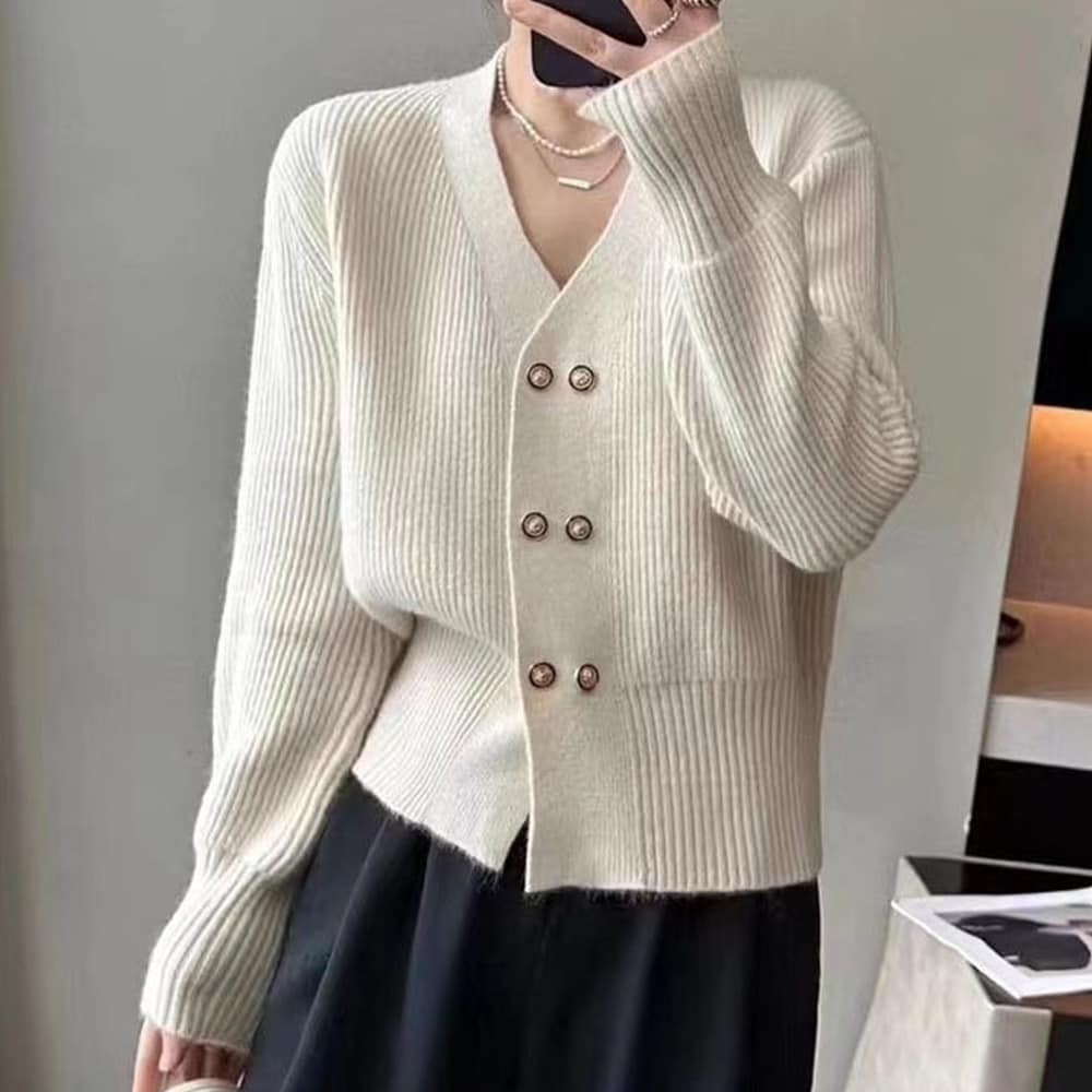 ダブルボタンニットカーディガン グレー