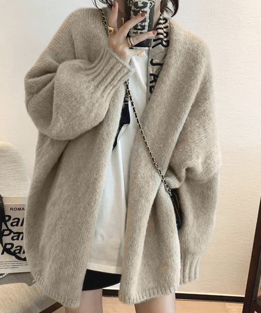 ボタンレスデザインでさらりと羽織れるトッパーカーディガン。