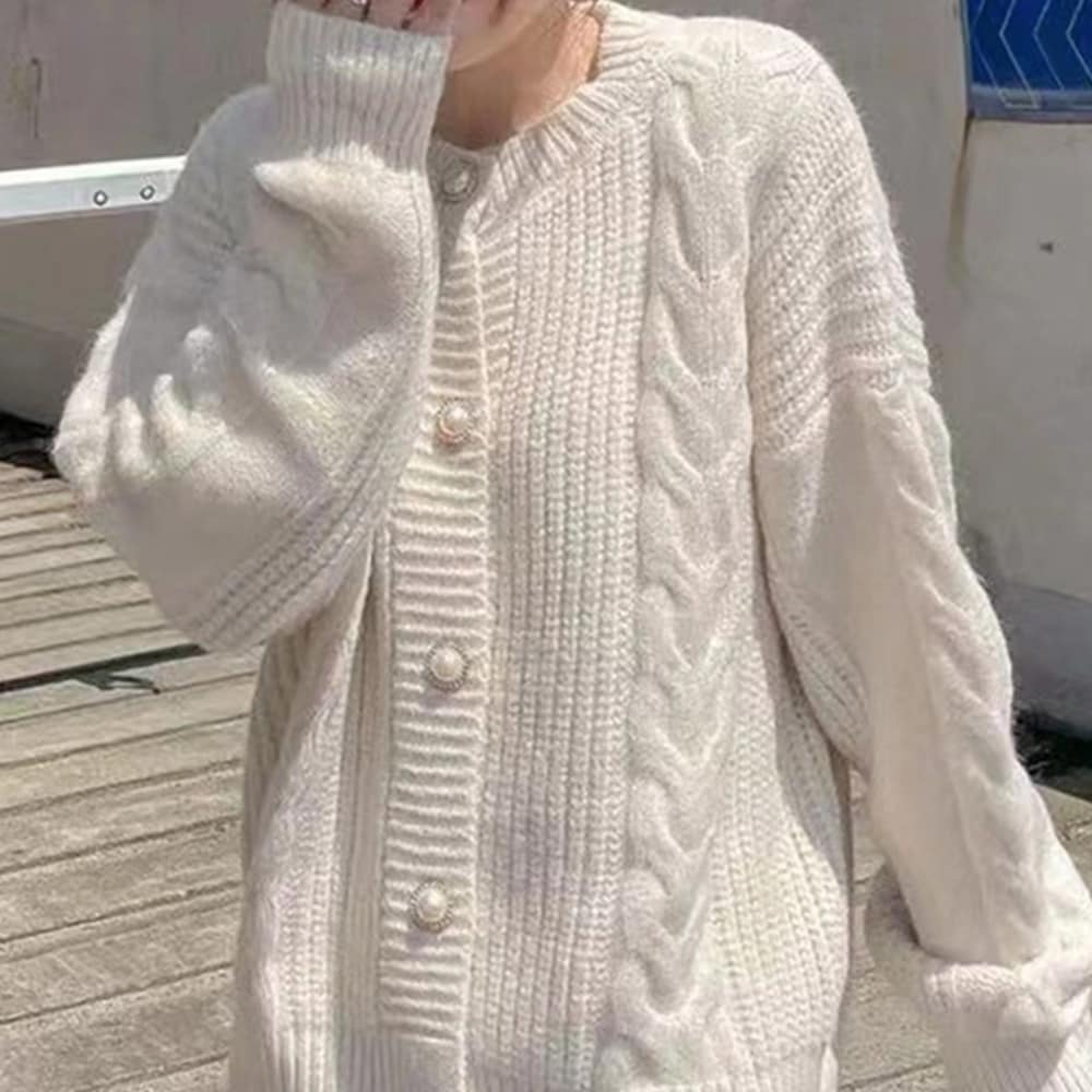 ケーブル編みホワイトカーディガン
