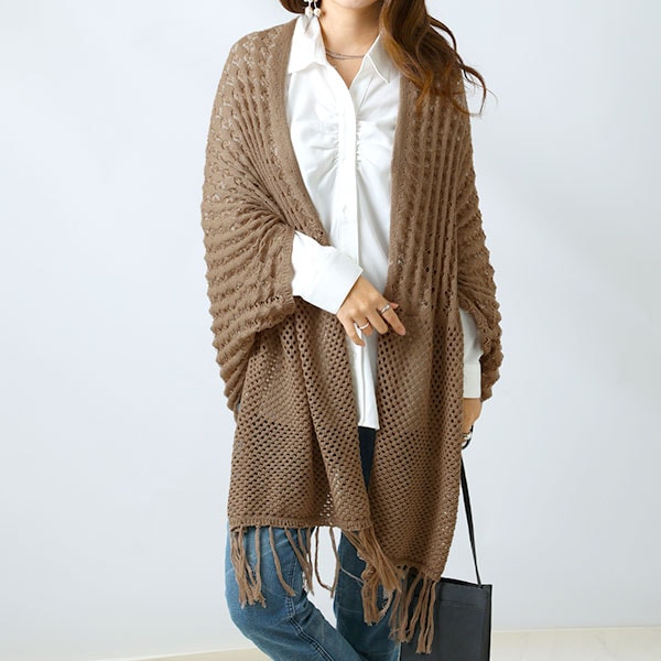 透かし編みニット ポンチョ ストール フリンジ ショール スカーフ 羽織り黒 ストール マフラー フリンジ ポンチョ カーディガン