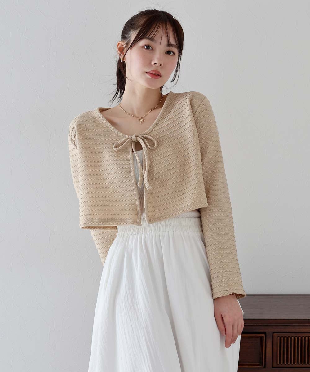 フロントリボンのクロップド丈カーディガン