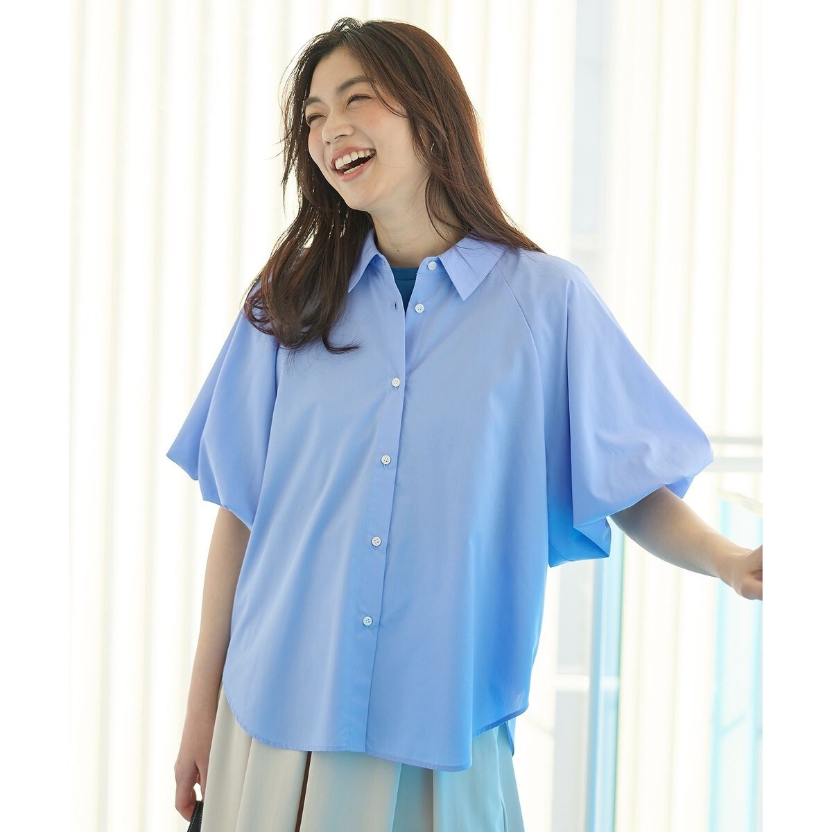 ボリュームのあるパフスリーブがポイントのブラウス