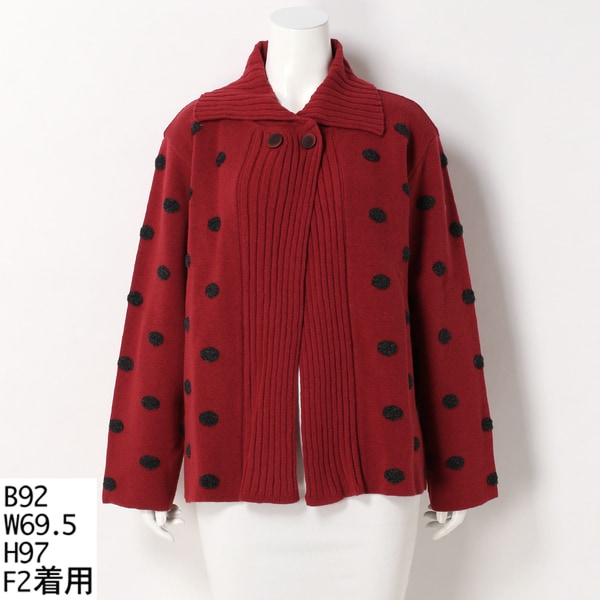 REBESA イタリア製 オーバーサイズ 厚手 ドット柄 バルーンスリーブ カーディガン ベージュ 総柄 Vネック ウォッシャブル ウール 変形 13号