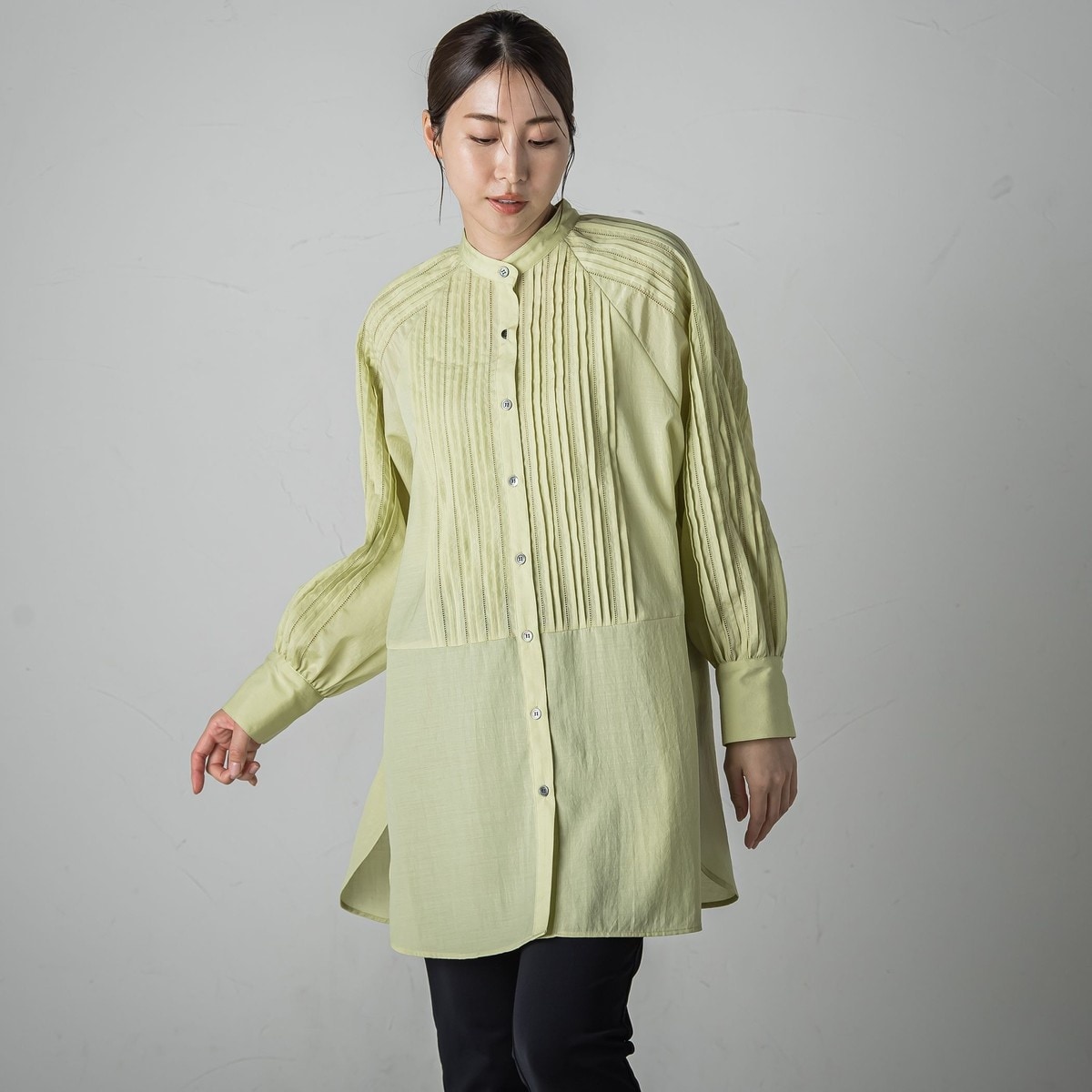 ポリエステル素材 / 無地 / 長袖 / ビショップスリーブ / LL・13号以上あり / UVカット加工 / 洗える / ライフスタイル / スタンドカラー / その他衿ぐり / パーティー・結婚式・二次会 / セレモニー・入学式・卒業式 / チュニック丈(トップス)