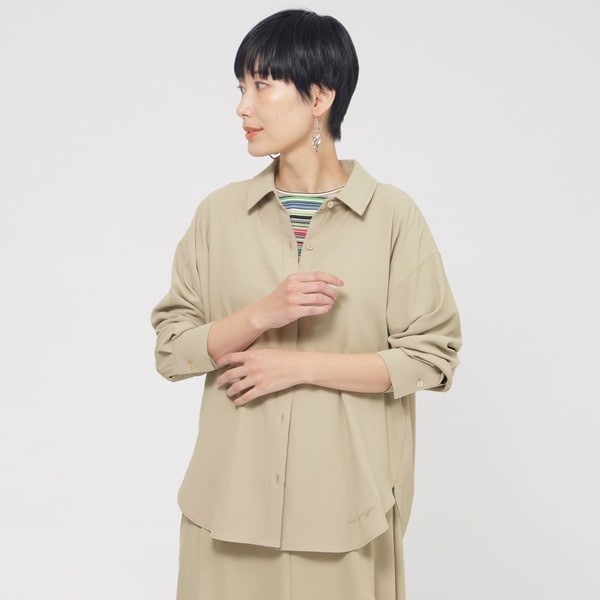 蝶理(株)が開発した多機能素材kireri(キレリ)を使用したシリーズ。ベーシックなデザインで、春夏を通して活躍する便利なシャツアイテムです。トップスとしても羽織としても汎用性のあるアイテムです。裾のラウンドに合わせたロゴ刺繍と、パイピングのような切り替えの衿デザインがポイントです。同素材のシャツ(U5M08537/U7M08537)、パンツ(U5R11537/U7R11537)、ワンピース(U5J03537/U7J03537)もご用意しております。パンツとセットアップでも着用も可能です。