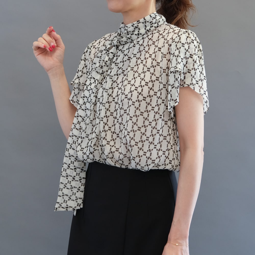 【FACE SANS FARD】 ベルベットリボン シアープリーツブラウス