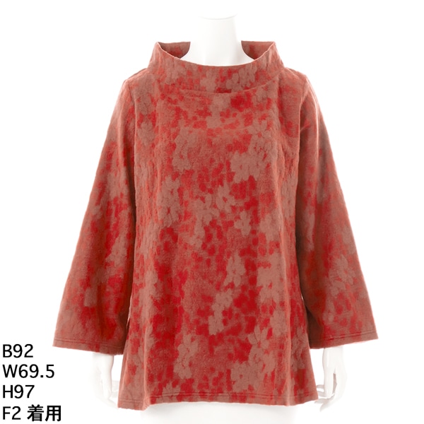 【大きいサイズ レディース】ふんわり軽いパイルジャガード起毛のすっきりチュニック【日本製】