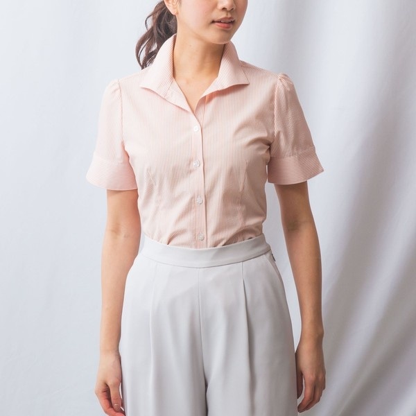 【NARACAMICIE】ストライプスタンドカラー半袖シャツ