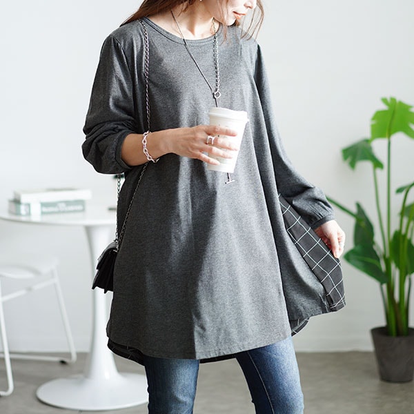 【大きいサイズ】 ティアードシャツドッキングニットチュニック 大きいサイズ レディース チュニック