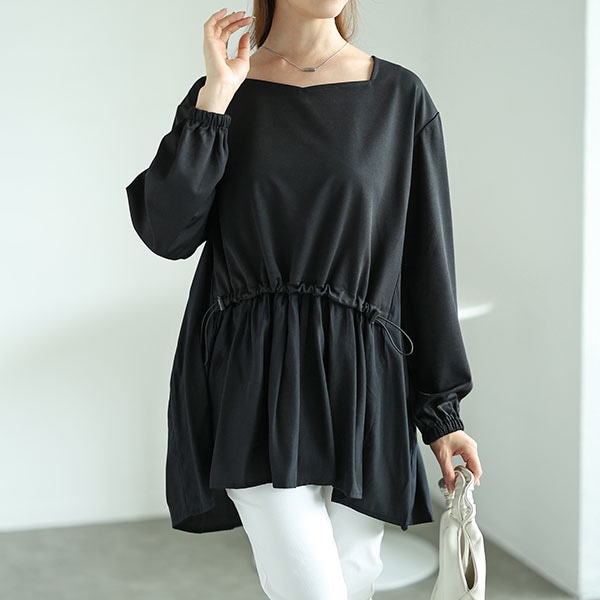 新品 大きいサイズ 袖ロールアップバックリボン付きチュニック4L