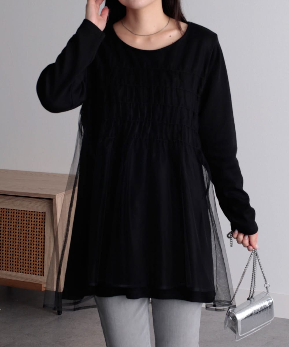 おしゃれもあったかも叶うチュールデザインのチュニックでちょっとしたお出かけもこなれ度アップ!【商品】