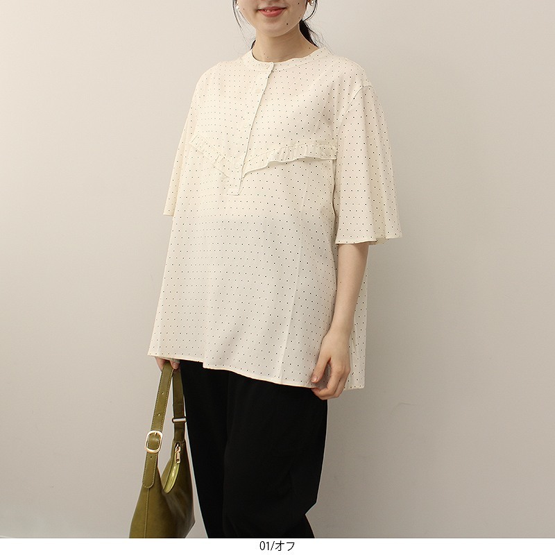 【大きいサイズレディース】ドット柄レイヤー袖ブラウス