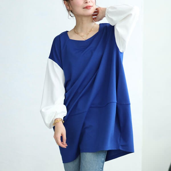 【大きいサイズ】 ウェーブプリーツフェイクレイヤードプルオーバー 大きいサイズ レディース トップス