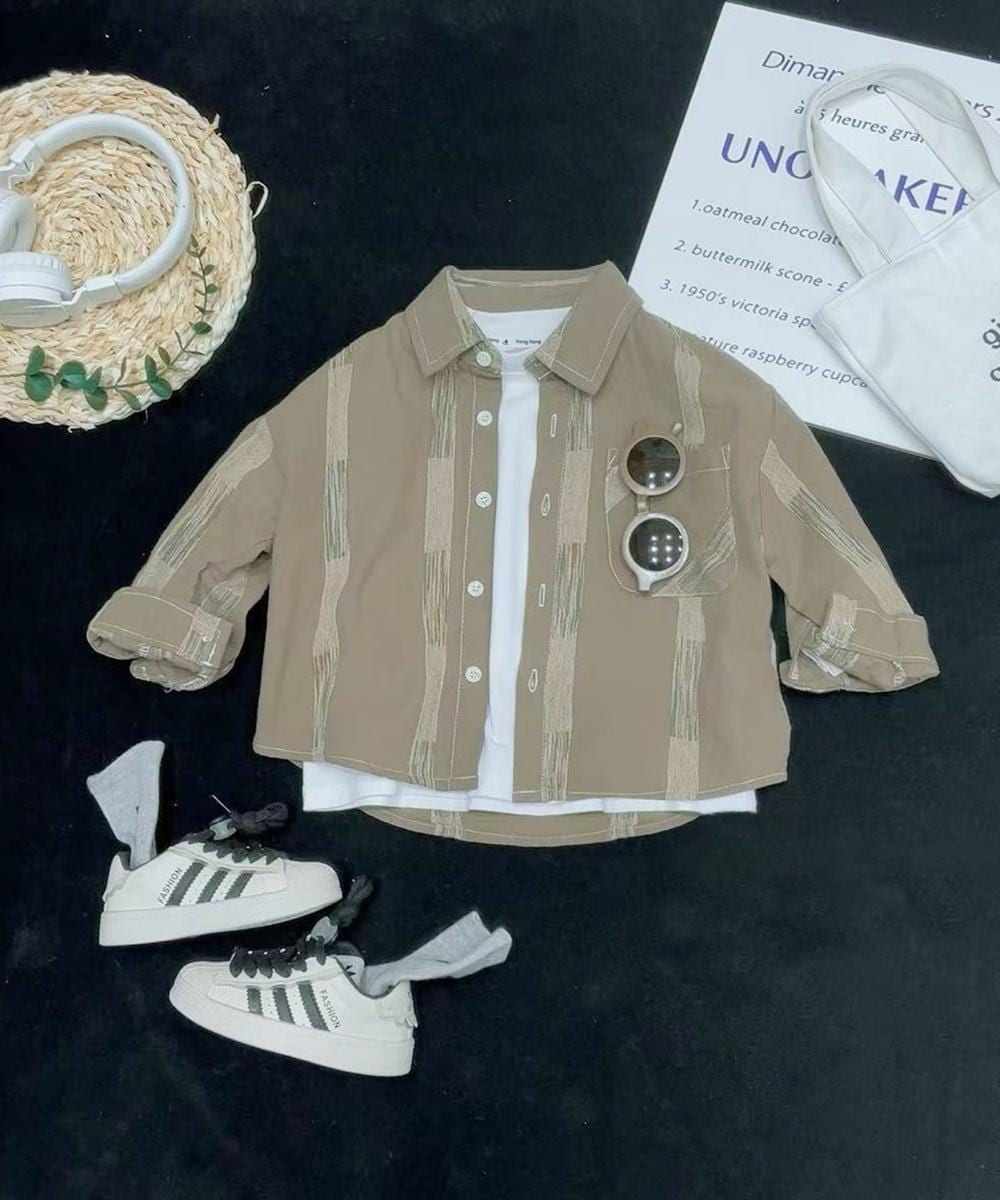 ストライプ柄を基調とした落ち着いたデザインで、カジュアルな日常使いにぴったり。フロントボタン仕様で、着脱が簡単なデザインです。袖をロールアップしてもおしゃれに着こなせます。