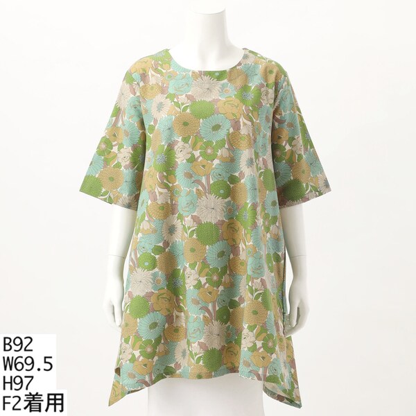 新品 M/L 和柄風 桜花模様 レトロチュニックトップス ゆったりライン