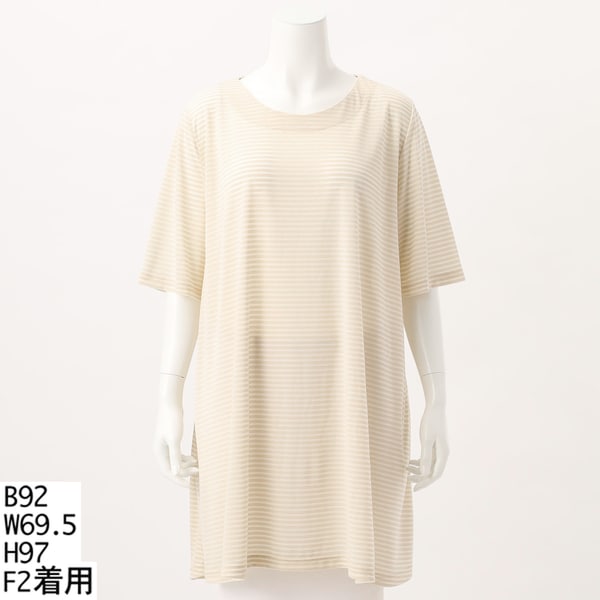 【大きいサイズレディース】タックボーダーフレアチュニック【日本製】