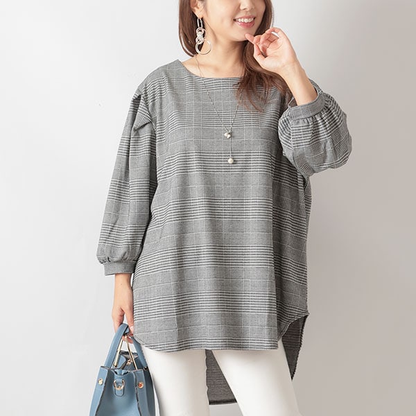 大人の雰囲気漂うジャガードチュニックの登場です。前後差のあるデザインで前はすっきり、後ろは気になる部分をカバーしてくれます。ボリュームのあるふんわりした袖で二の腕もカバー☆後ろのファスナーで後ろ姿もぬかりなし!シンプルなデザインなので小物でポイントをつけたりおしゃれが楽しめそう☆