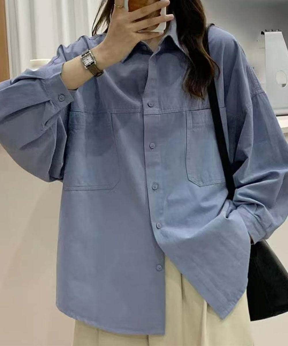 オーバーサイズシルエットが特徴的なポケット付きカラーシャツです。フロントの大きなポケットがアクセント。ドロップショルダーでボリューム感のある袖とリラックス感のあるシルエットで、カジュアルでこなれ感のあるアイテムです。