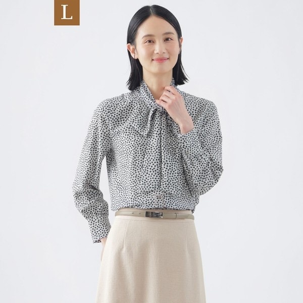 【L】【新色追加】【ウォッシャブル】ジオメトリックプリントブラウス