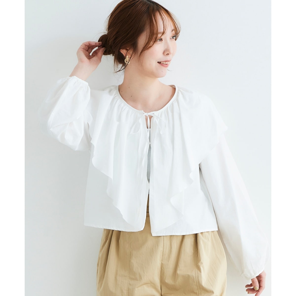 ひらひらと大きなラッフルカラーが目を惹くブラウス。
