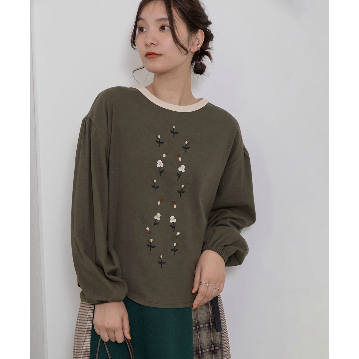 衿配色 刺繍 ビッグシルエット ドルマンスリーブ シャツ