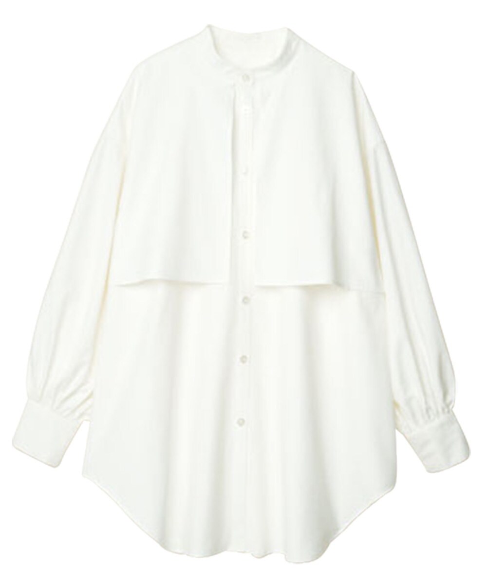ヨークデザインノーカラーシャツ/長袖ブラウス/FREE/コットン/WHT/112140417601-02