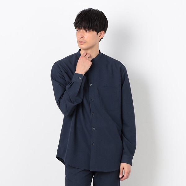 羽織として使えるリラックスシルエットのバンドカラーシャツです。