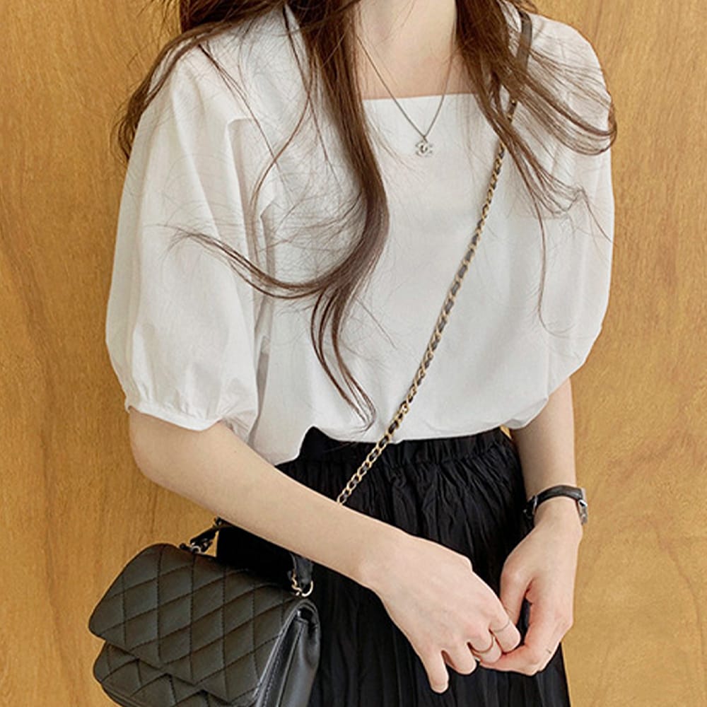 ホワイト スクエアネック ブラウス
