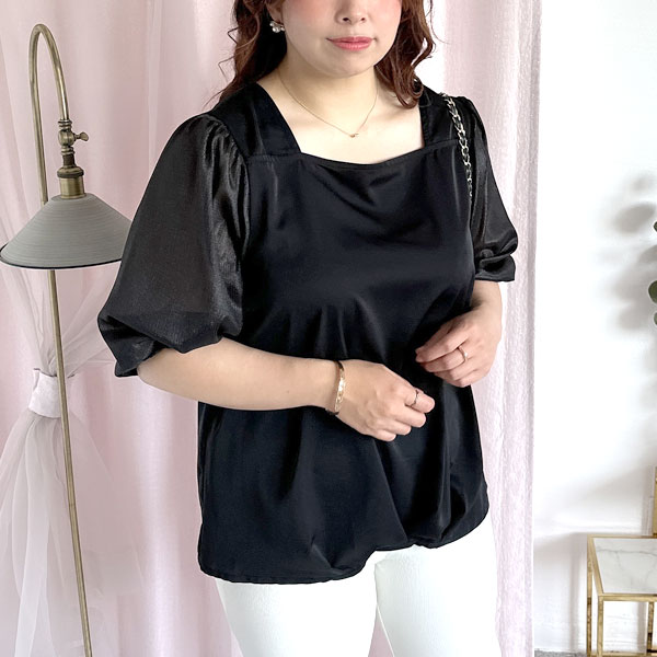 【大きいサイズ】 シアースリーブダイヤモンドネックワンピース 大きいサイズ レディース ワンピース