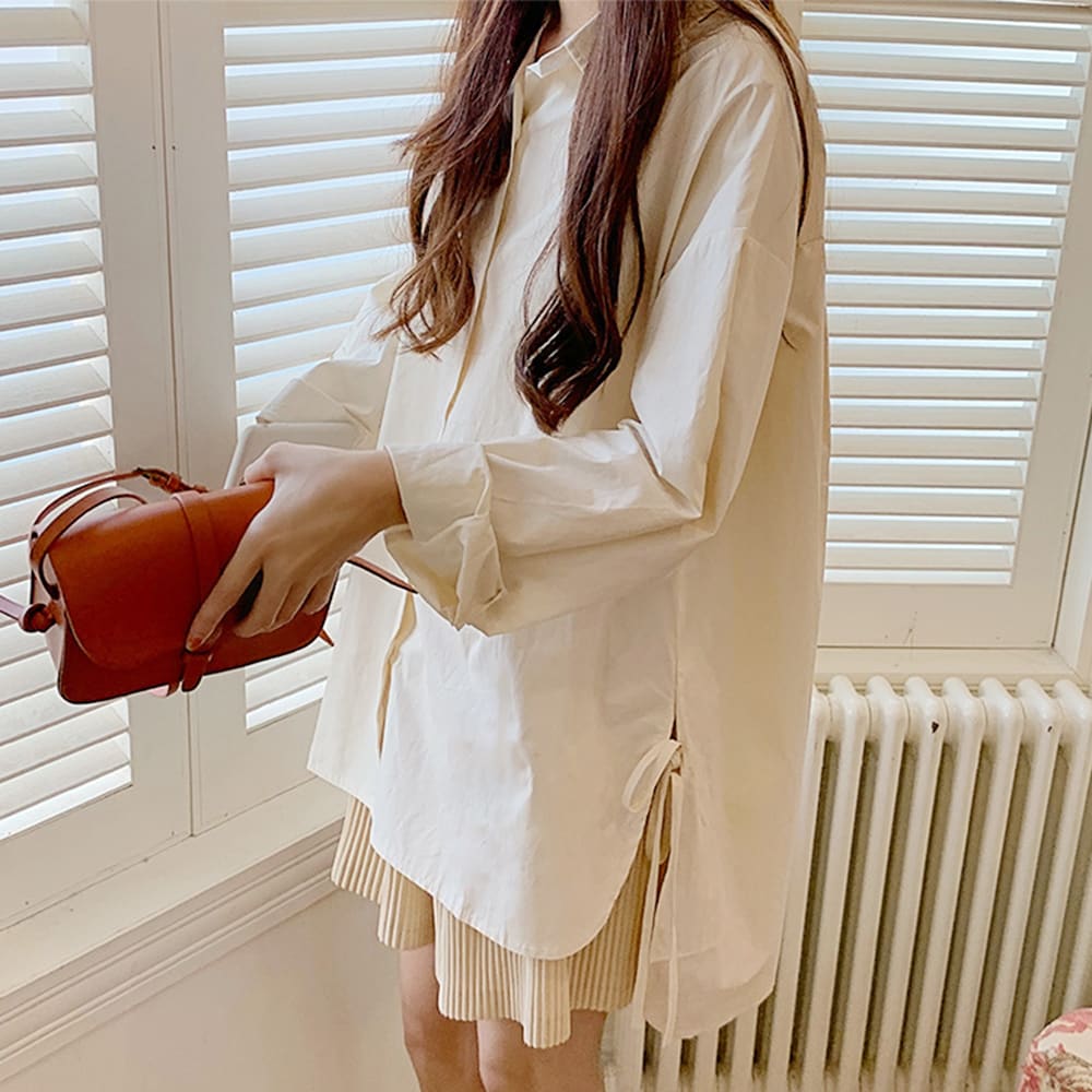 GRL シアーリボンサイドスリットブラウス dk1108