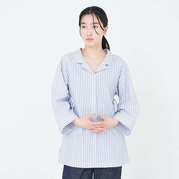 ワードローブにプラス一枚、新たな雰囲気のブラウスをお探しの方にお勧めな開襟タイプです。