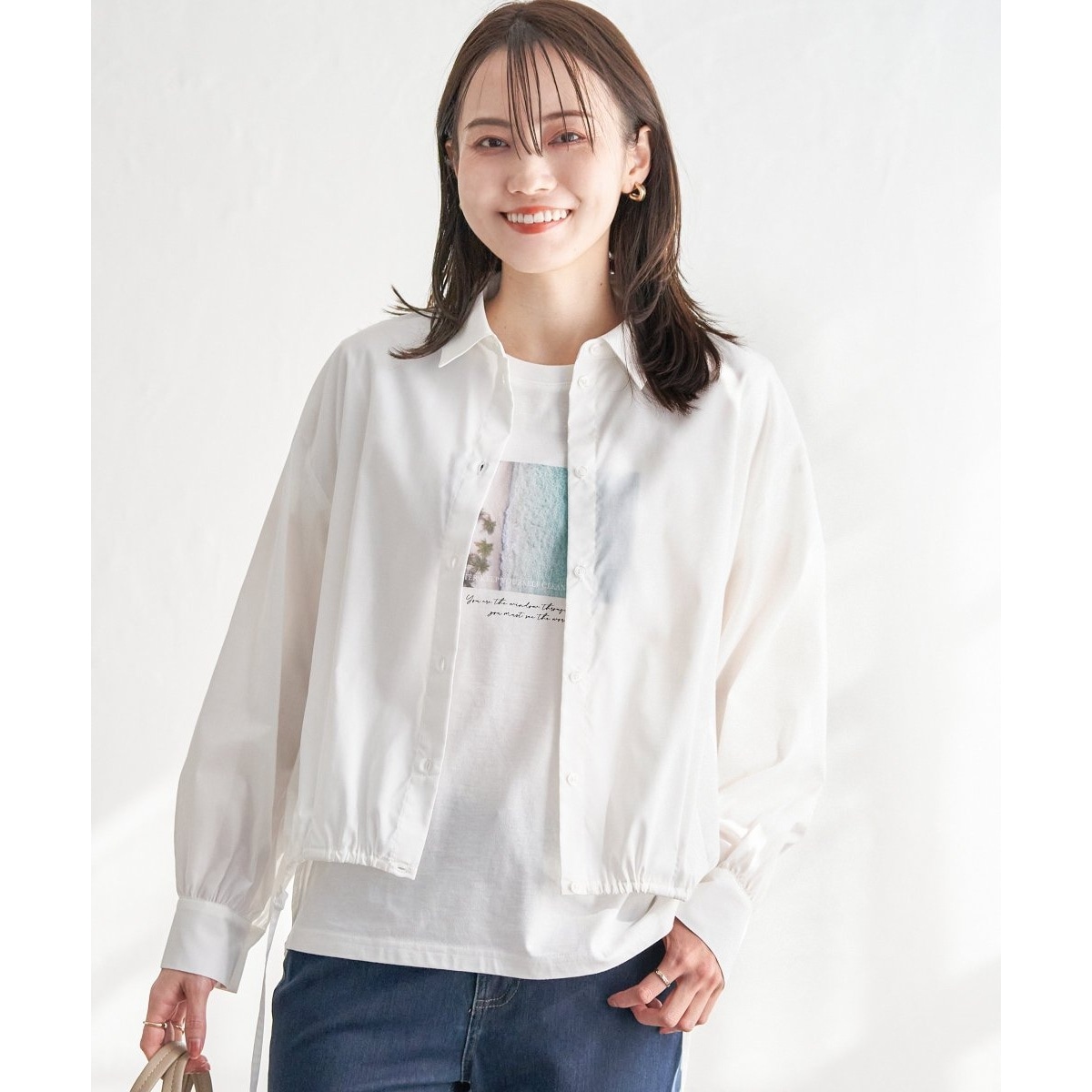 トレンド感のあるショート丈風なシャツ。